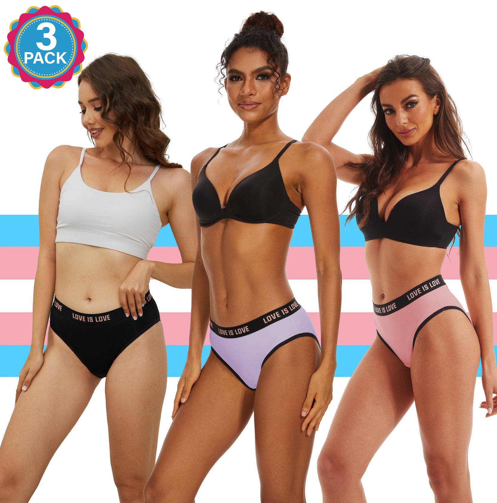 *Each set includes 3 pairs of different colors underwear.