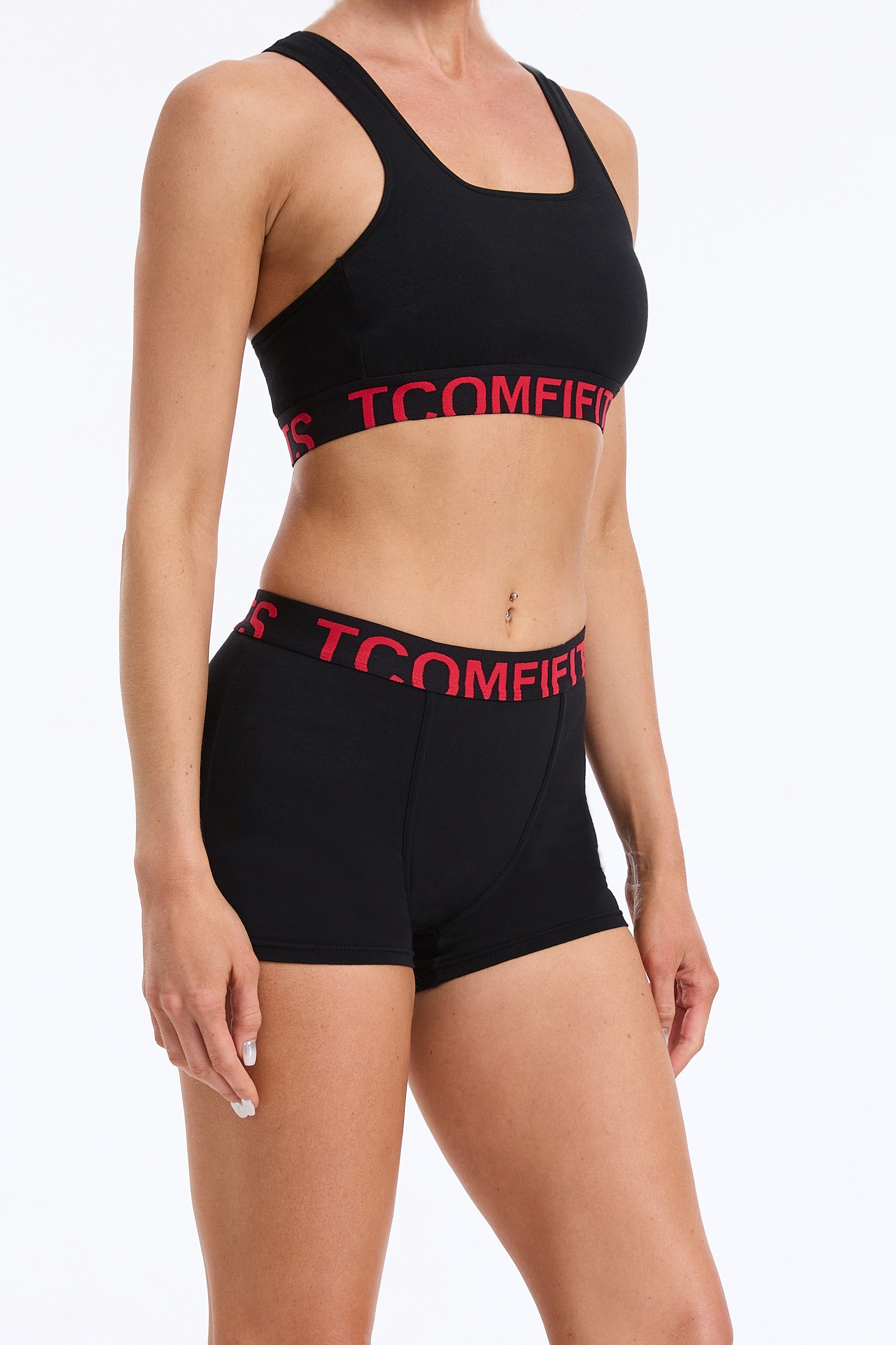 Black "Rooted" Cotton Essentials Kit: 1 Soft Compression Bra + 2 Signature Boy Shorts【Masc Fit】