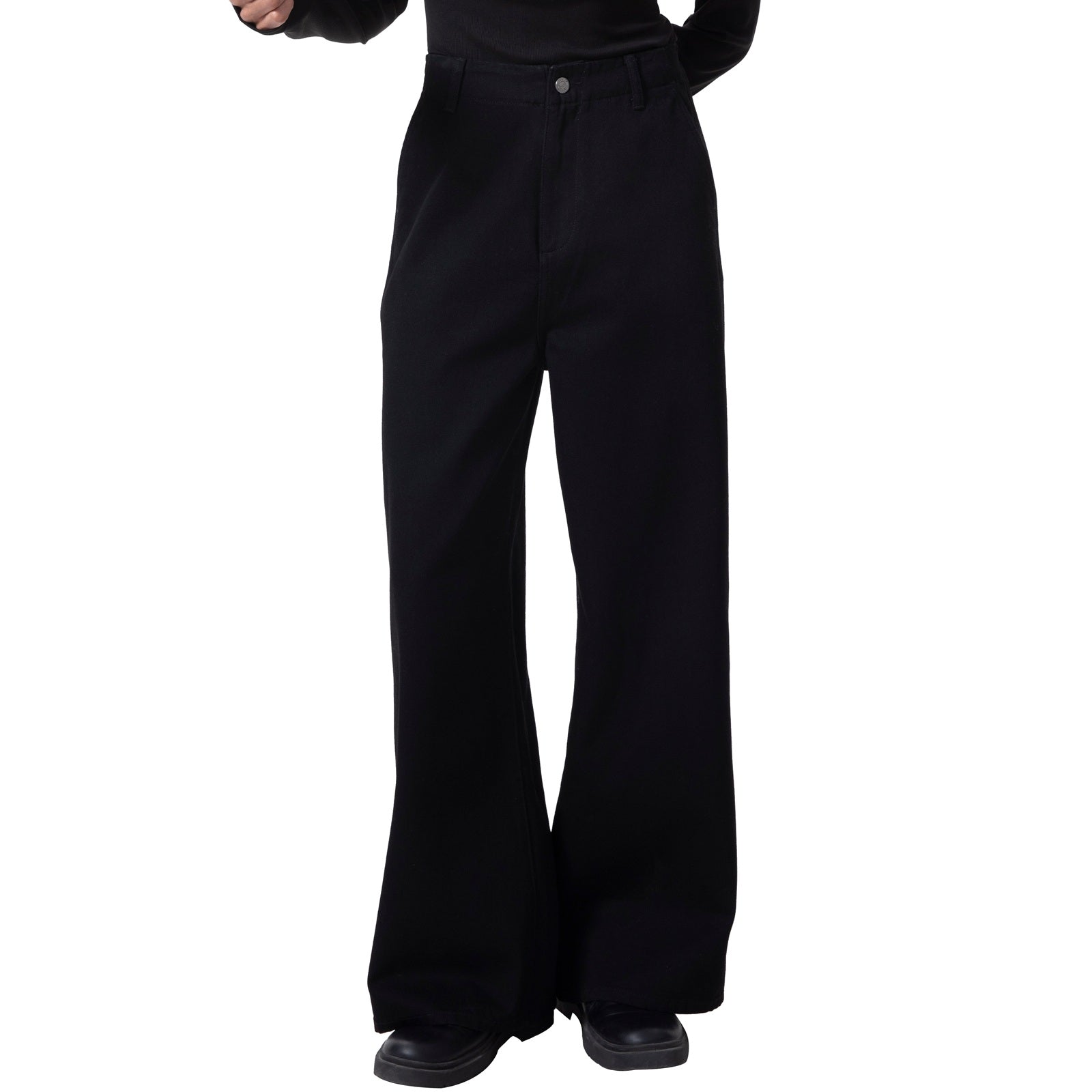 Low-Visibility Classic Black Tailored Wide-Leg Jeans, Flatter Front【Femme Fit】