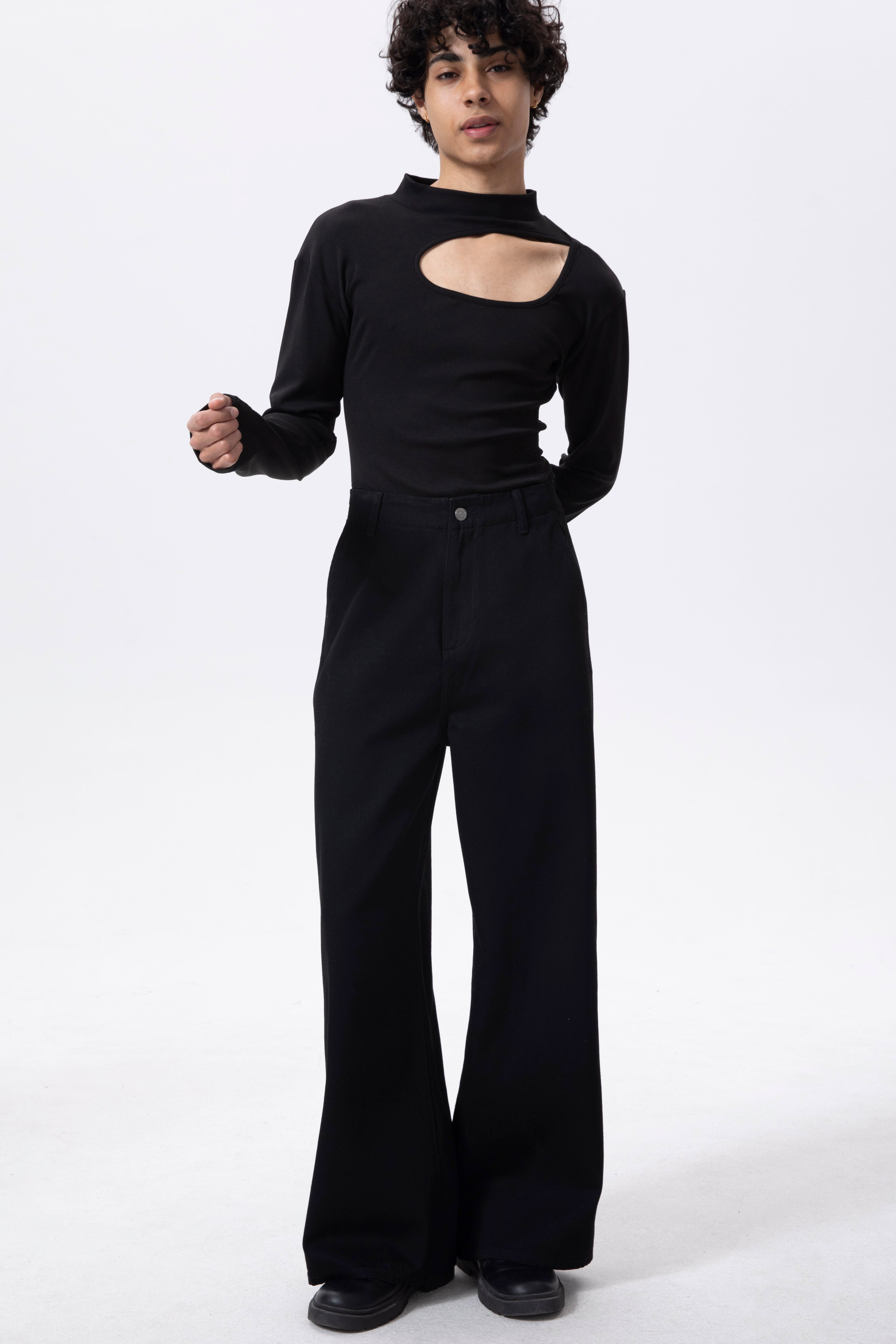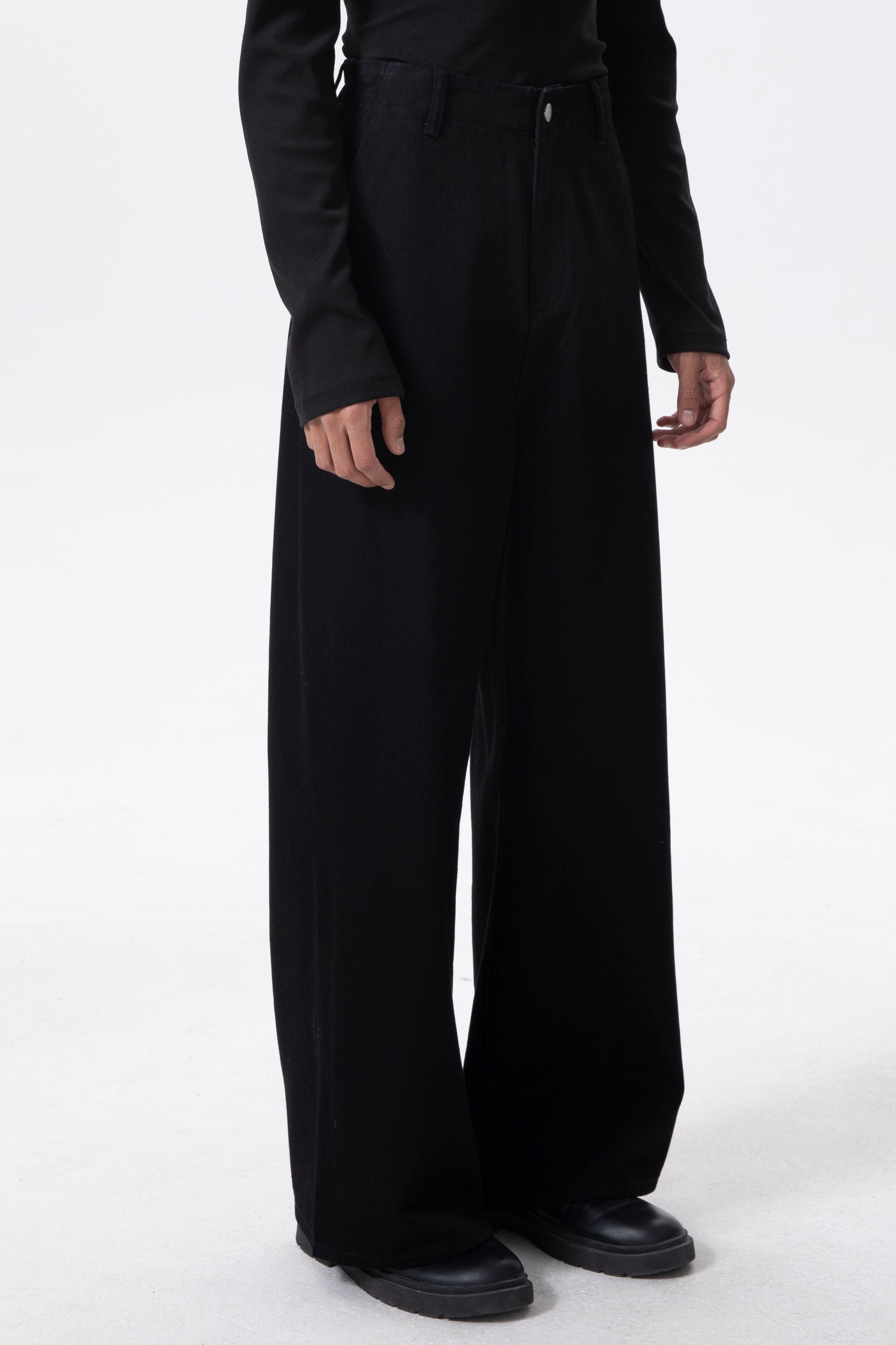Rebuilt through the waist–hip ratio, rise, and leg volume for a true neutral-to-femme wide-leg silhouette.