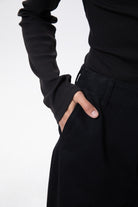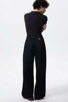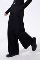 Classic black tailored wide-leg denim. FEMME FIT silhouette for a lower-visibility, flatter-looking front.