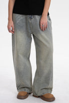Low-Visibility Vintage Azure Y2K Radiant Wide-Leg Jeans【Masc Fit】