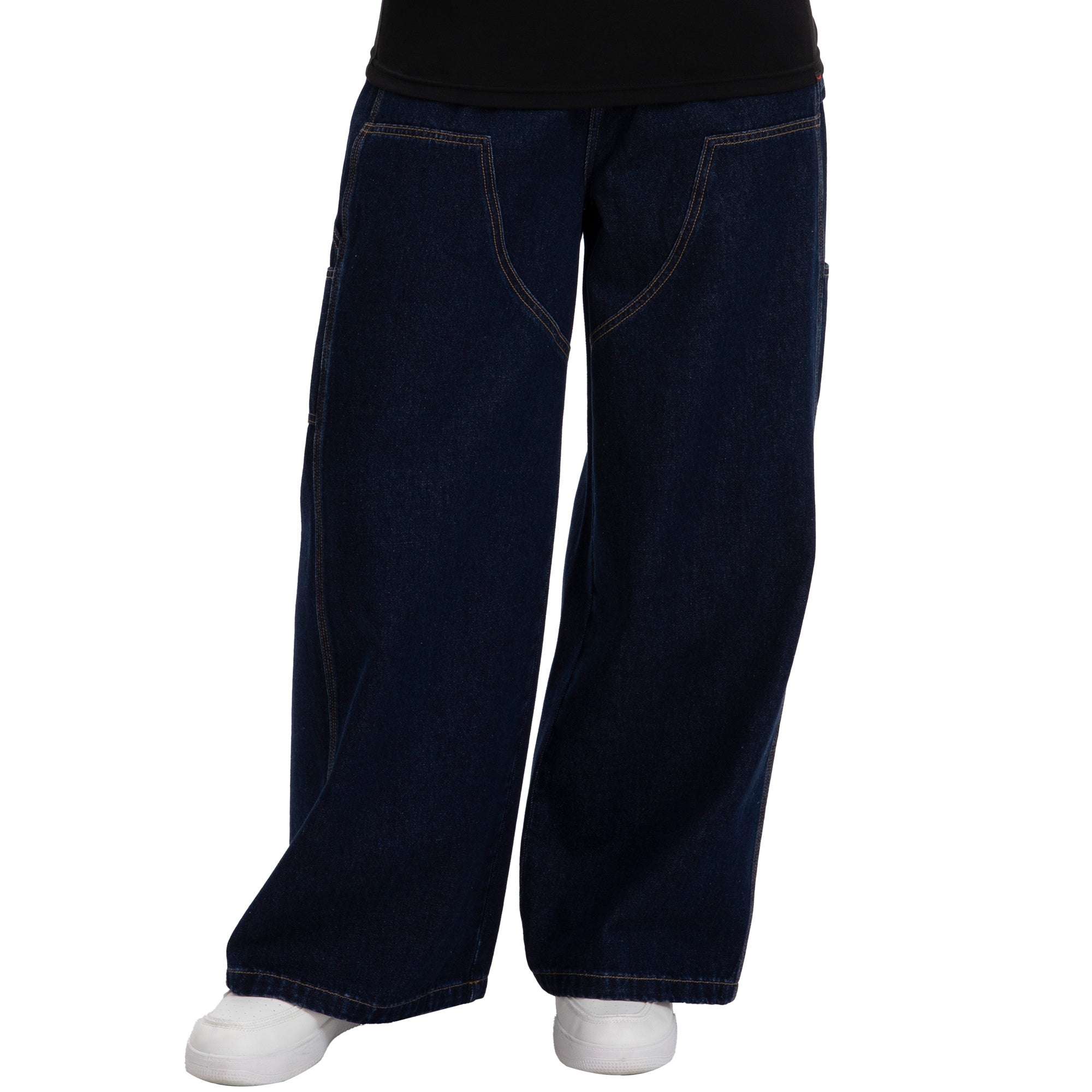 Deep Indigo Utility Cargo Wide-Leg Denim. MASC FIT silhouette for a lower-visibility.