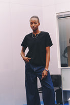 We use premium, high-density thick denim that provides a "structured drape." The fabric is stiff enough to hold its boxy shape while falling vertically to elongate your silhouette.