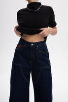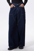 Designed with iconic industrial cargo stitching and a deep indigo wash. These jeans deliver a heavy-duty, masculine energy that stands out from standard denim.
