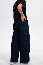 Low-Visibility Deep Indigo Utility Cargo Wide-Leg Jeans【Masc Fit】